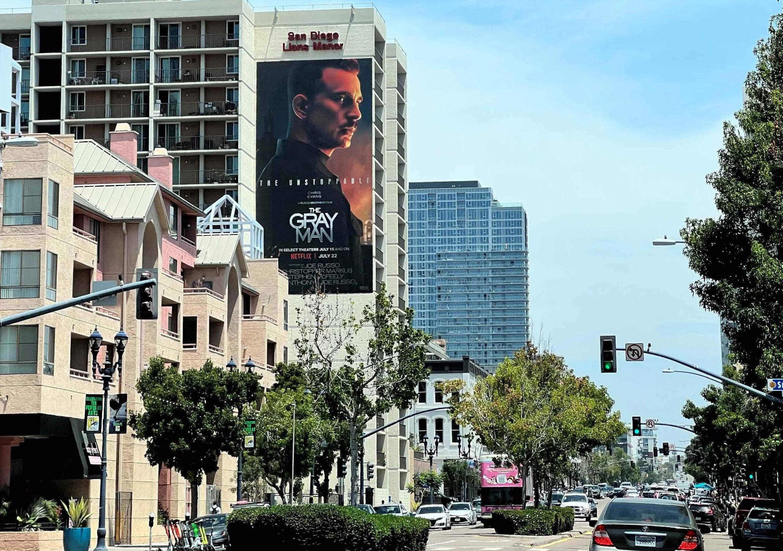 On the Lions Manor building, next to the Gaslamp District and Westfield Horton Plaza, a 5-level outdoor shopping mall. Captures…